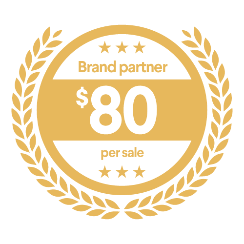 Once you bring in 50+ sales every 3 months, you become an official brand partner earning $80 commissions.