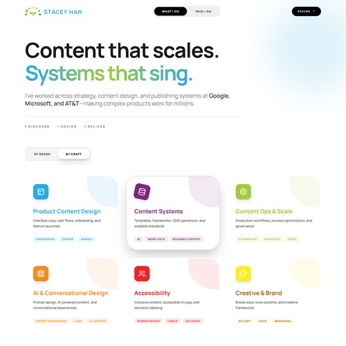 With 10+ years at Google, Microsoft, Charles Schwab, and AT&T, I design UX content, manage content operations and publis